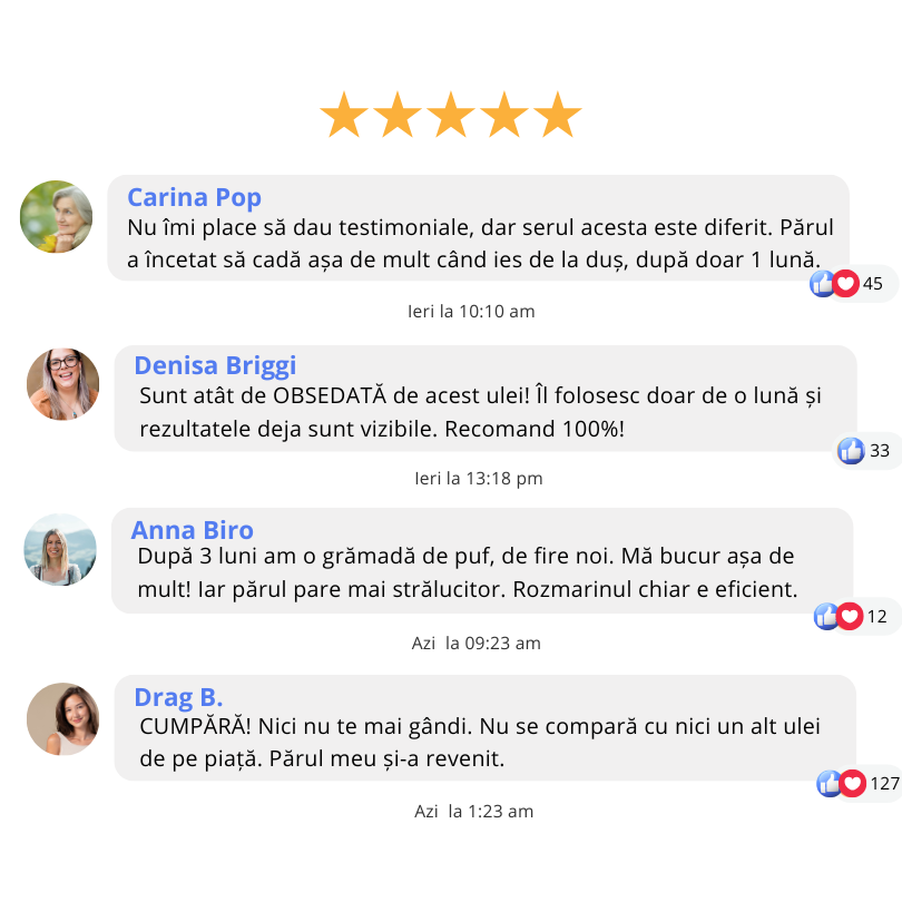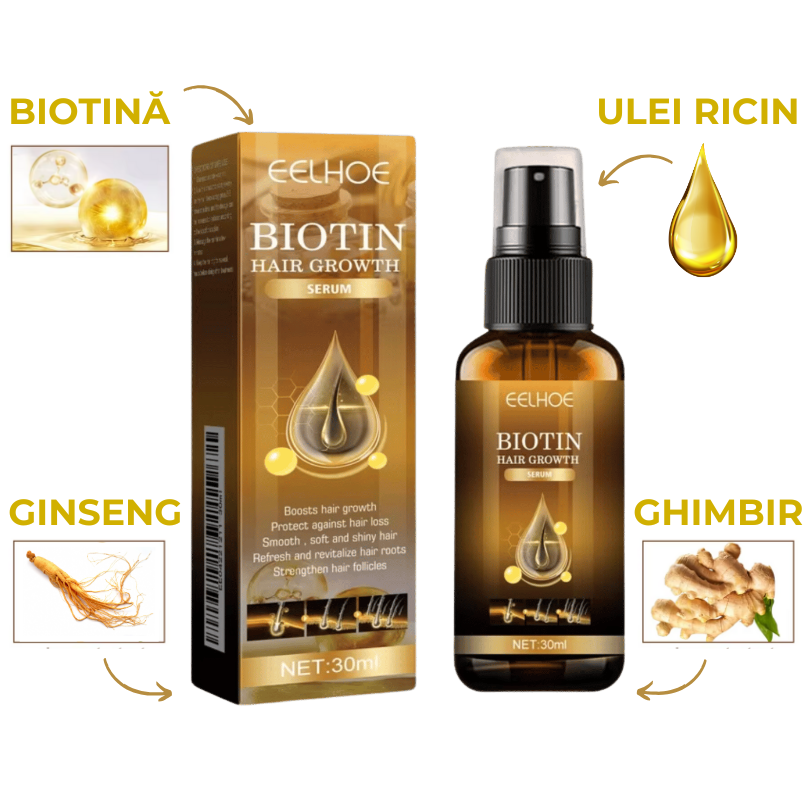 Serul nostru natural pentru creșterea părului conține proporția originală de Biotină, legendarul Ulei de Ricin și 3 extracte din plante speciale (Ghimbir, Ginseng și Polygonum Multiflorum), pentru a-ți crește părul mai gros, mai des, mai lung și mai repede.